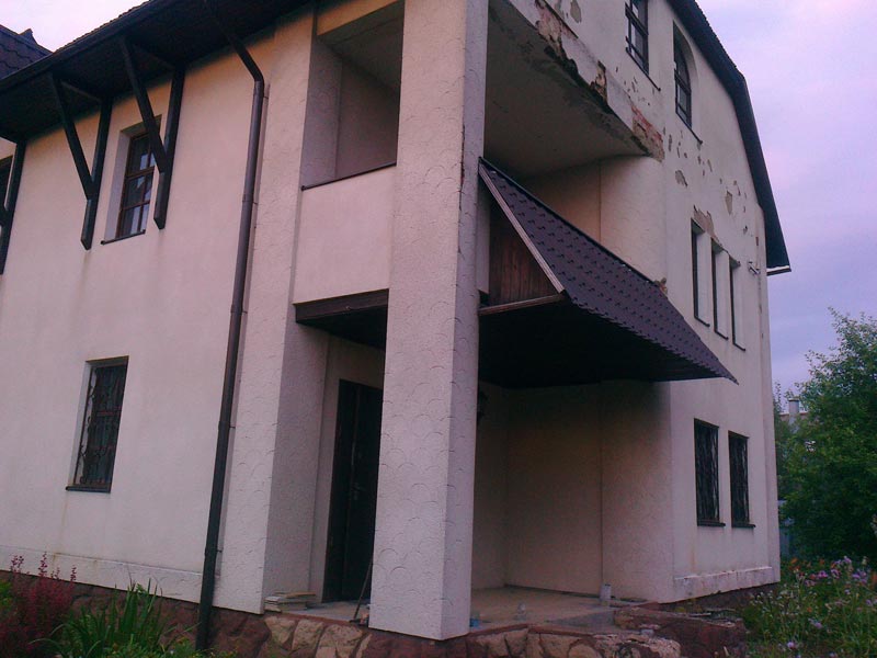 п. Фирсановка, Московской области. Ремонт, декоративная отделка фасада. Перестройка входной группы и летней веранды